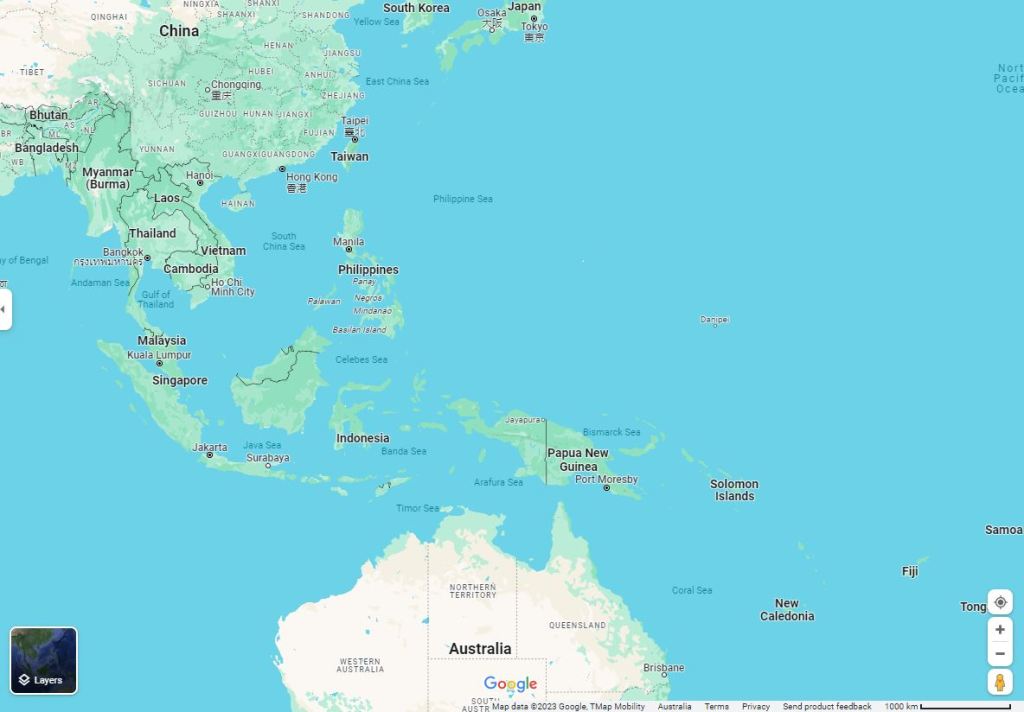 - Malesia – By Original: Hariboneagle927Derived: Peter coxhead – This file was derived from: Southeast Asia location map.svg:The WGSRPD botanical continent is coloured green., CC BY-SA 4.0, https://commons.wikimedia.org/w/index.php?curid=41683623