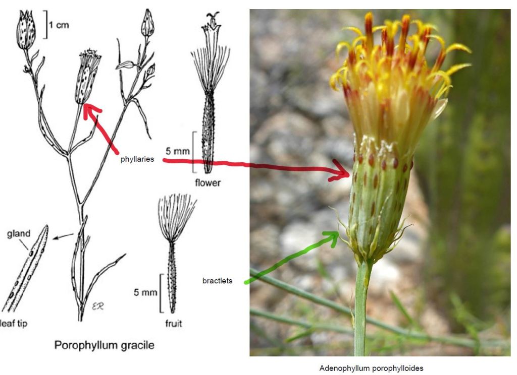 The flowers of A.porophylloides do bear a striking resemblance to those of the Porophyllums, as does the structure of its seeds.