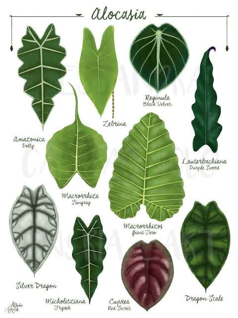 - Alocasia varieties via AAL Gardening on Facebook : https://www.facebook.com/photo?fbid=362471848619802&set=pcb.362471935286460