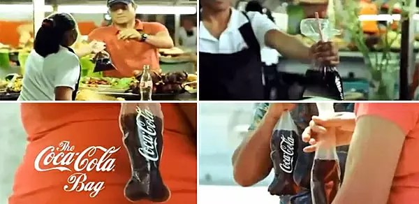 Coca Cola has manoeuvred itself into the situation as, as far as they are concerned, a dark fizzy liquid in a bolsa could be anything (even, hawk tua, Pepsi) so they have entered the fray with an appropriate shaped (and branded) bolsita so that people know exactly what you’re drinking.