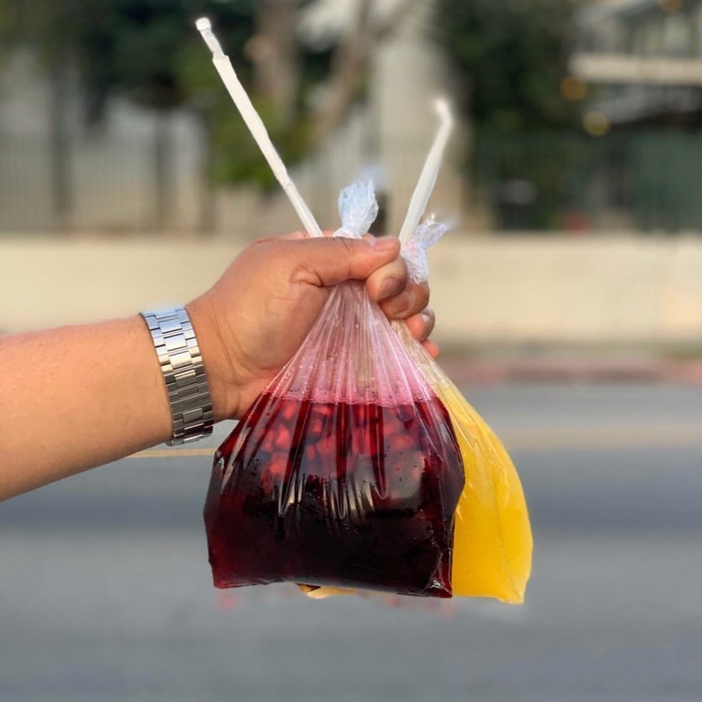 In Mexico you can purchase your drinks from various vendors by the bag (or bolsa). This is simply a bag with a straw in it.