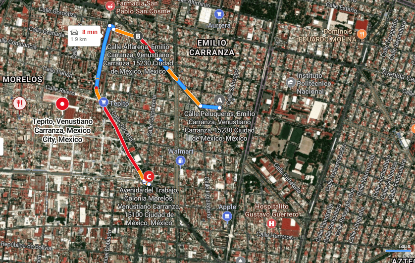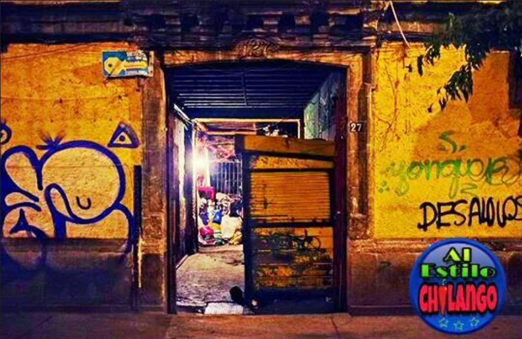 That “elswhere” is none other than the Barrio Bravo, Tepito (1). Now, in Tepito, the vecindades that “once cooked delicious beans for a family of at least eight people are now warehouses for marijuana and methamphetamine.” He warns that it is a place that one should not travel alone, asking questions is dangerous and that it is better if one shows up with a guide, a previous “client” of those same dens that you can procure your weed or meth from. Arriving at the entrance of a vecindad with a green gate located somewhere in the perimeter delimited by Peralvillo and Tenochtitlan, Peñón and Matamoros they proceed up to the second floor and enter an apartment past a young woman huffing solvent who offers them a turn. After a brief interaction with the dealer inside they move along.