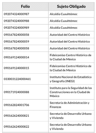 So, to learn more about government involvement in vecindades, they turned to the Transparency Platform (PNT) and made six different requests which they addressed to eight different governing bodies: