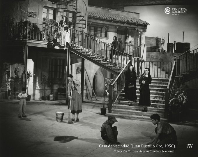 Because they are community spaces, their structure had as its purpose the scheme of coexistence between neighbours who had a shared central patio and at least one more communal space for the laundry area. In the films from the Golden era of Mexican Cinema (more on this later), we meet the gossiping concierge and the laundry rooms where the housewives gather to discuss everything that is happening in the building.