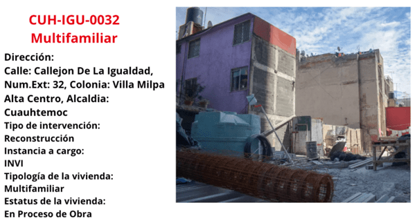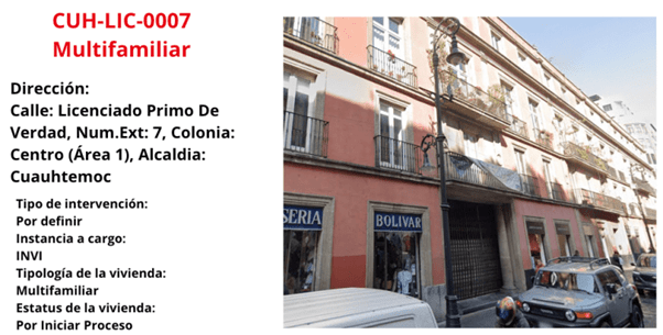 The last registered building, the multifamila building with code CUH-LIC-0007, is at high risk of collapse, so it must be evacuated and restored as soon as possible. The reconstruction program provided five rent supports so that tenants could vacate the building.
