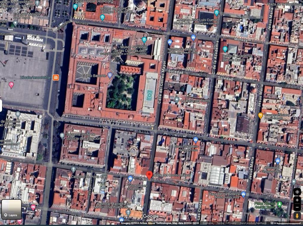 Now this is an interesting story (and one that I’m seeking more source material one) but it has been said that (maybe) dark magic was used to build some of these colonial casonas (large houses/mansions) and palaces in the heart of the city in what was only a short time ago the city of Tenochtitlan. An (in)famous alarife (1) by the name of Jaramilllo was bought in from Spain to construct the first mansions of the colonial period for the the conquistadors in New Spain. He offered his clients buildings that would not be affected by the tremors and earthquakes prevalent in the area. His terms included that he would only build at night. His assistants bought babies which had been either “purchased” or kidnapped from the native women of Tlaxpana and, along with nubile maidens (núbiles doncellas) they were walled up into niches, arches and in specially prepared spaces in the corners of the walls whilst still alive. It has been said that between 30 and 40 victims were immured (2) into each wall. The dark magic arises in that living victims (rather than dead bodies alone) were required as the constructive principle relied on the anguish, terror and panic of the victims because the discharge of energy released by this anguish merged with the buildings architecture and gave it supernatural strength. The dead were not entombed for this very reason. This dark secret is said to be the reason why some of these buildings have prevailed during both flood and earthquake since then. I have found anecdotal reference to remains of these bodies being found during electrical installations of vecindades along the Correo Mayor in the CDMX but have yet to find any real evidence of this (I am looking though)