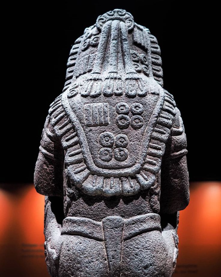 Xiuhtecuhtli is an “old” god. Not only in age but from an older pantheon of Mesoamerican gods. He is a god of fire and of time. The word xihuitl not only translates as “turquoise” but also “year” (which is where the associations with time arise). He is often also equated with an older old god of fire, Huehueteotl, who is sometimes referred to as Huehuetéotl-Xiuhtecuhtli.