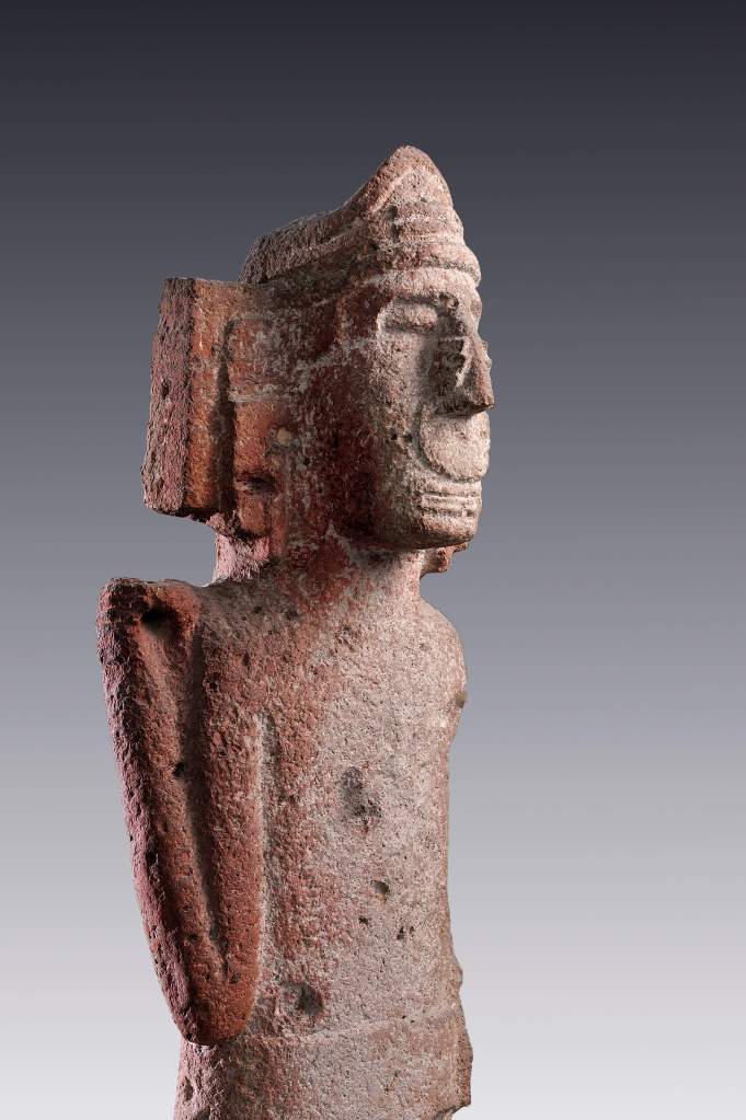 Pomedio (2005) notes of the statue of Xochipilli that “The tonallo symbol is present on the headdress of the statue and also on the base.” Gamio (1922) explains that the tonallo constitutes the lower part of the hieroglyph Tonallimoquezayan of the Codex Mendocino (1). He adds: “These words signify sun, day, heat, summer, and the sign is emblem of the deities of summer, vegetation, fertility.” We find on the upper edge of the base the basic unit of the tonallo symbol, that is, the chalchihuitl or green stone that represents the green precious stones such as jade and the different jadeites found in Mexico. (Pomedio 2005)