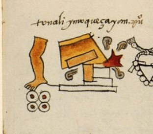 This understanding is further reinforced by Woods analaysis of glyphs in the Magliabecchiano Codex “This element for a day or the sun [tonalli) has been carved from a cloak featuring five flowers in the Magliabechi Codex.. This glyph for “day” is the central one of the five “flowers.” She also notes “how it compares favorably to the glyph for tonalli from the Codex Mendoza”. This element for a day or the sun appears on a page in the Magliabechi Codex where a cloak with a “Five Flower” design (Macuilxochitl) is featured. This glyph is one of the “flowers,” and yet it strongly resembles the tonalli hieroglyph from the Codex Mendoza.