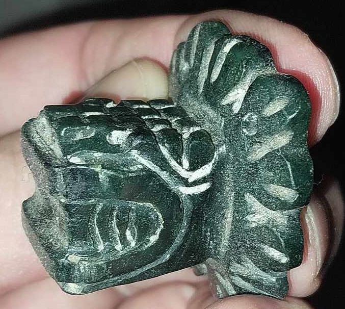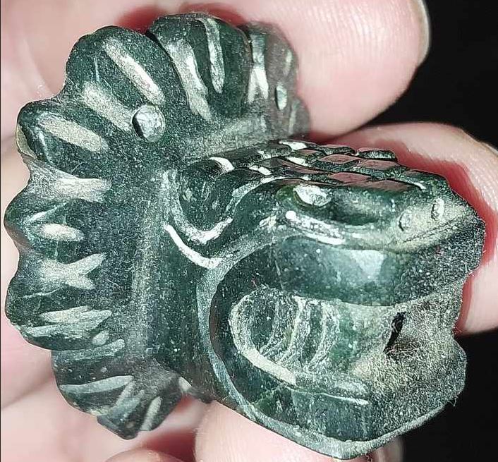 I also have in my collection an obsidian representation of a carving from the Pyramid of Queztalcoatl which I purchased from an artisan selling his wares to tourists in the grounds of Teotihuacan.