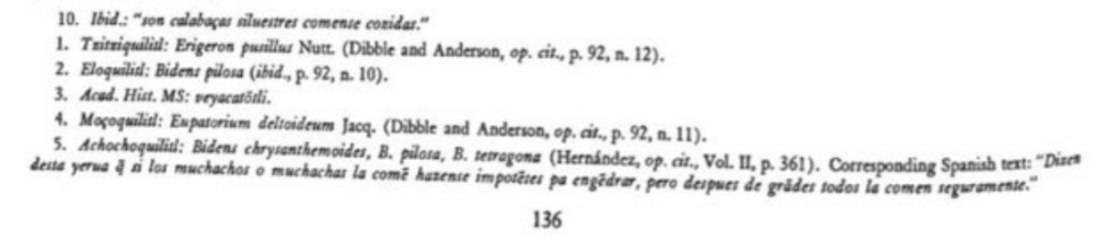 Tzitziquilitl : Redfield (1930) notes this as being Bidens leucantha (1).