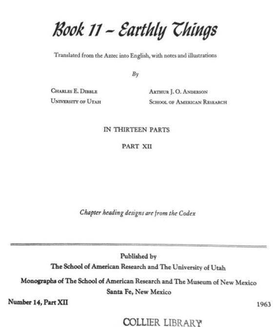 - Gates, William (2012) An Aztec Herbal: The Classic Codex of 1552 (A translation of the Codex Cruz-Badianus Aztec Herbal of 1552) Publisher: Courier Corporation, ISBN 0486140970, 9780486140971