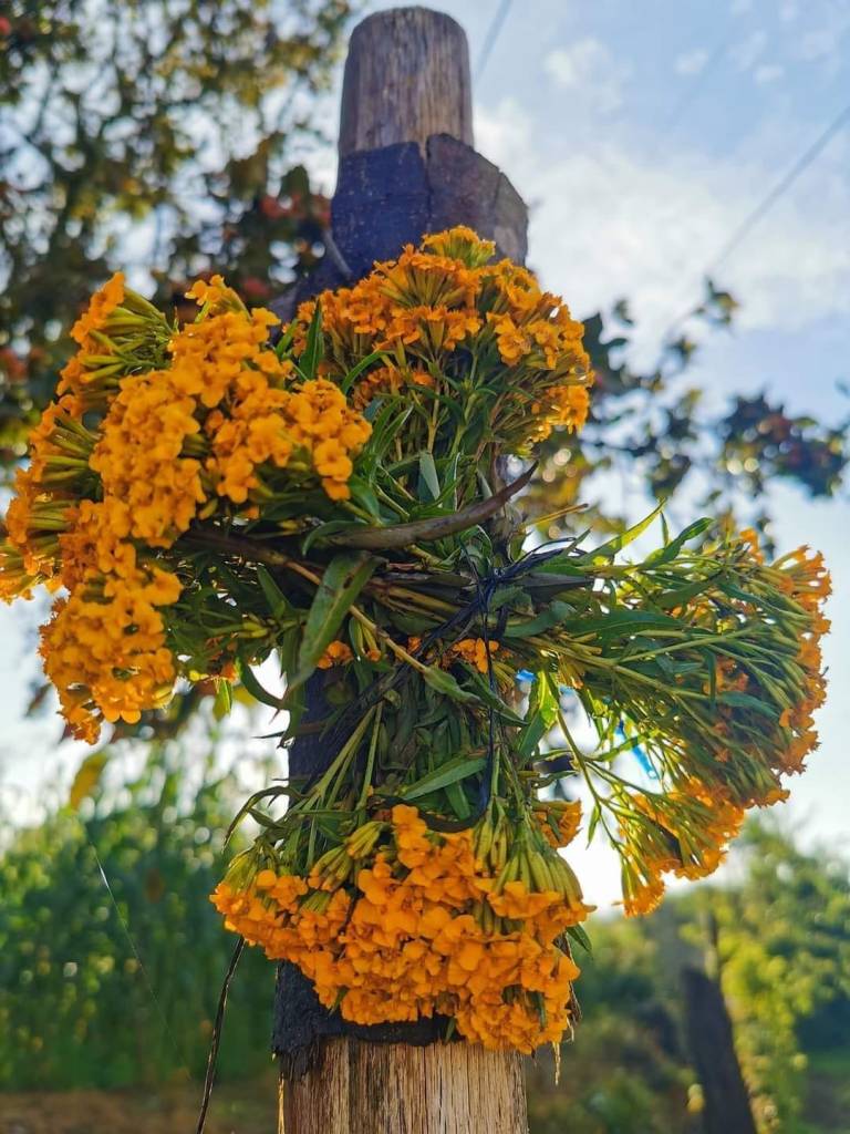- crosses made from pericón are also hung in crops (again to protect from storm damage/lightning strike) and above the doorways of homes to protect them from el chamuco (the devil). Read Quelite : Pericón : Tagetes lucida for more on this custom.
