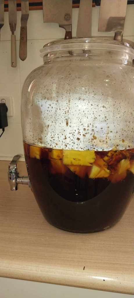 This one only takes a day or so longer but they add pearl barley to aid with fermentation and in doing so make a drink slightly different to a plain pineapple tepache.