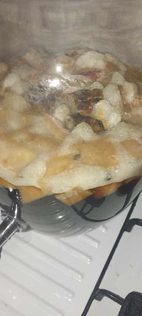 By Tuesday afternoon things had stepped up once again. Foamy fermentation bubbles (I hope it’s meant to do this)