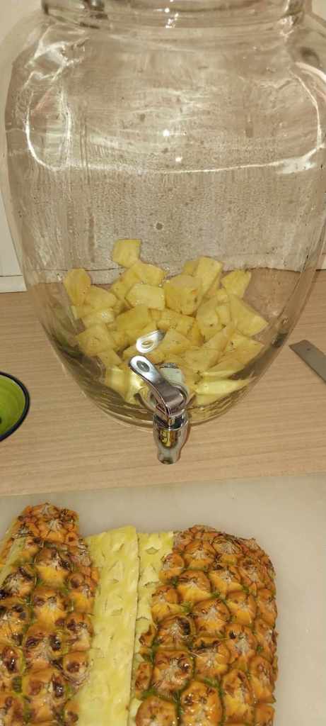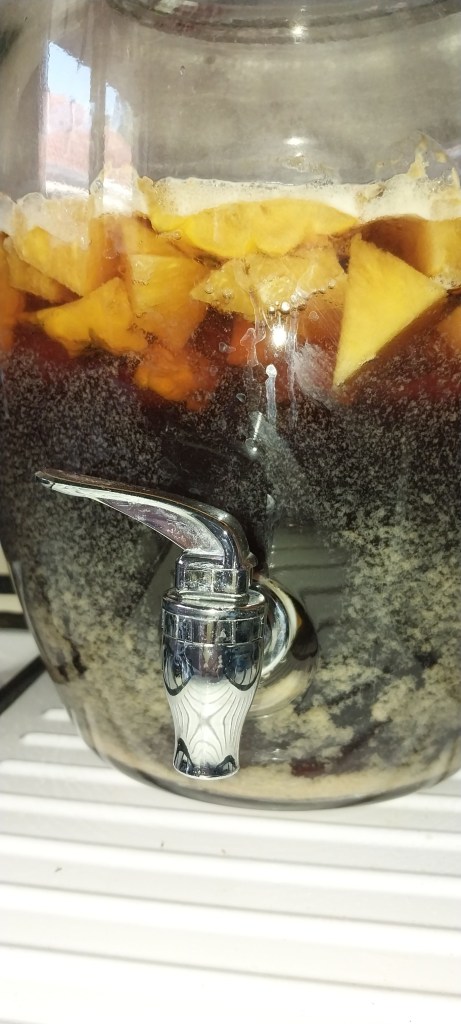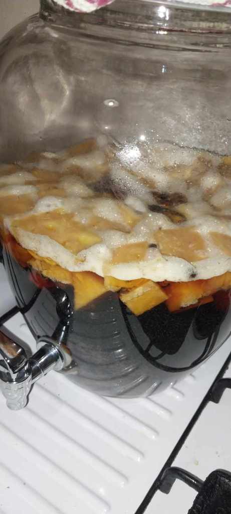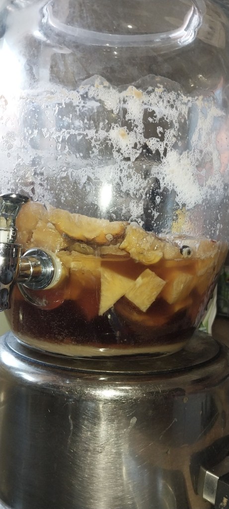 Looking back on it (1) I perhaps should have used more spices (?) Most of the recipes above had more in them but I am aiming for a more pineappley aesthetic. The spices used are themselves all antimicrobial (even the ones I didn’t use – black pepper, star anise, ginger – one even has ancho chile in it) and have other medicinal benefits as well. I’m hoping my spices (or perhaps lack of) don’t negatively affect the drink.