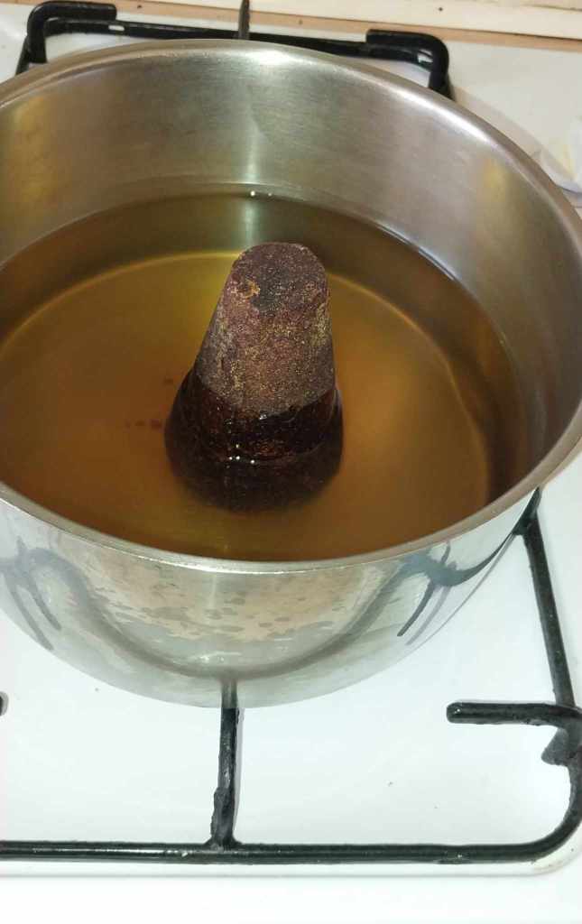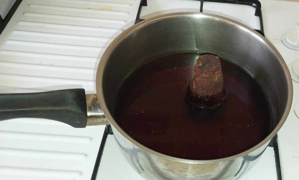 Place your piloncillo in a pot with 1 litre of water and dissolve the sugar over a medium heat.
