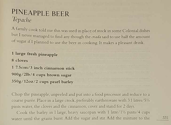 I thought I’d go through my library (it’s a biggun – more than 300 books on the cuisines of Mexico alone) and see what other recipes I could find. They were few and far between and varied quite a bit. Base ingredient as are all more or less the same but brewing time differed quite a bit. Dianas recipe only ferments for around 5 days but she adds a can of beer to the mix for the last process (which is kind of a cheats way to boost the ferment but is not at all uncommon to do)