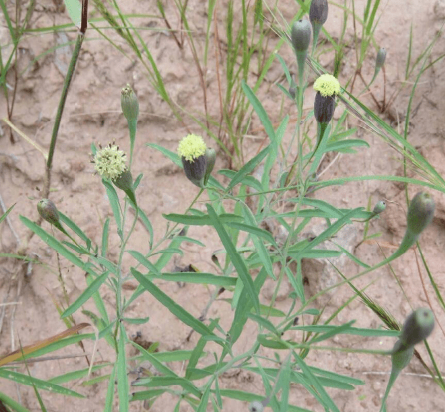 Botanically speaking……Porophyllum riparium is characterized by being an annual or short-lived perennial, glaucous, odoriferous (1), monoecious herb (2) , 15–80(–130) cm tall, with sessile or attenuate into a pseudopetiole, linear-elliptic leaves with submarginal and subapical semi-pellucid oil cavities, lemon-colored infundibuliform corollas and exserted brownish anthers. This is pure botanical speak that will be outside the ken of most but those VERY specifically trained in such matters. I do go through some of these terms in other Posts and I place this here for those interested in such matters.