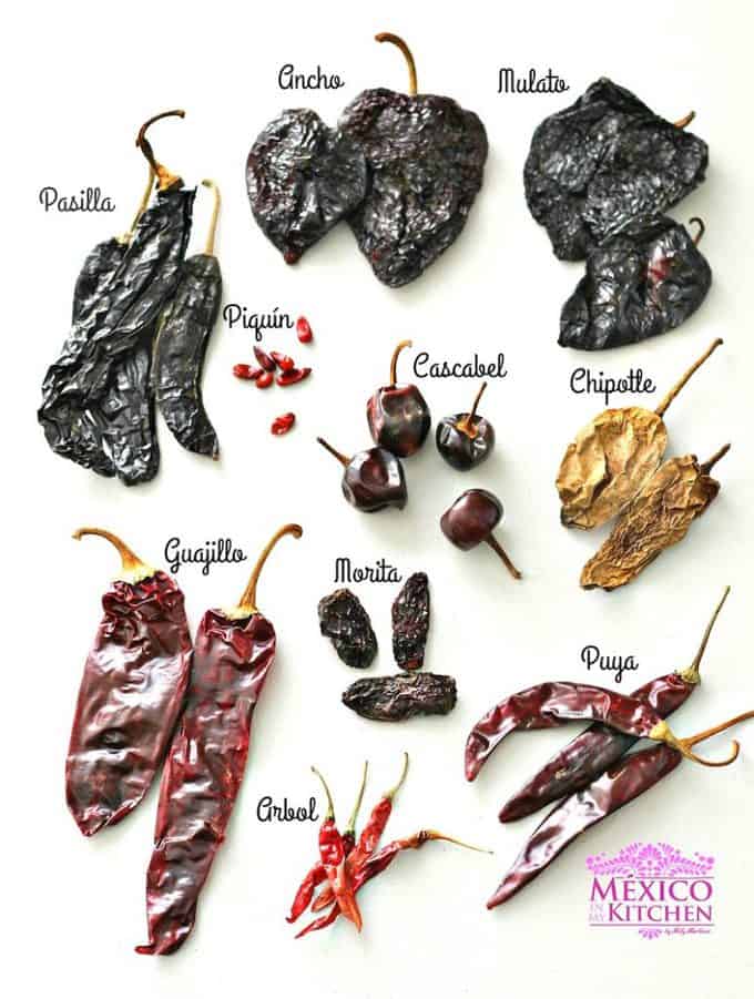 - Chile varieties – dried – https://www.mexicoinmykitchen.com/mexican-dried-peppers/