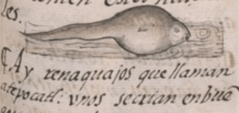 - atepocatl/renacuajo (tadpoles). See Vitamina T : The Tlapique. Cousin of the Tamal. (the axolotl also comes up in this one),