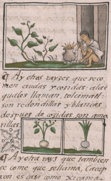 - Depiction of harvest of spirulina and the cakes made from the algae. Illustration from the Florentine Codex, Late 16th century. – Public Domain, https://commons.wikimedia.org/w/index.php?curid=2158186