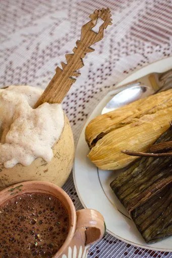 - In a cup, serve ¾ of the atole and float ¼ cup of the cocoa/chocolate drink on top. This mix of flavours makes Guatemalan chilate unique.