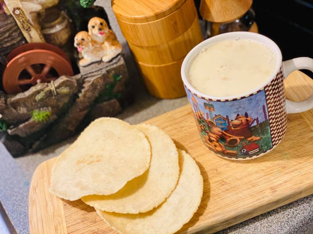 Atole de tortilla, se puede hacer con tortilla recién hecha o ya tostadas y solo se calienta en agua.