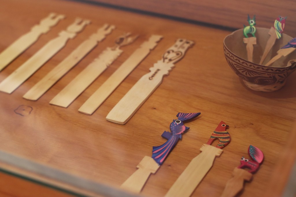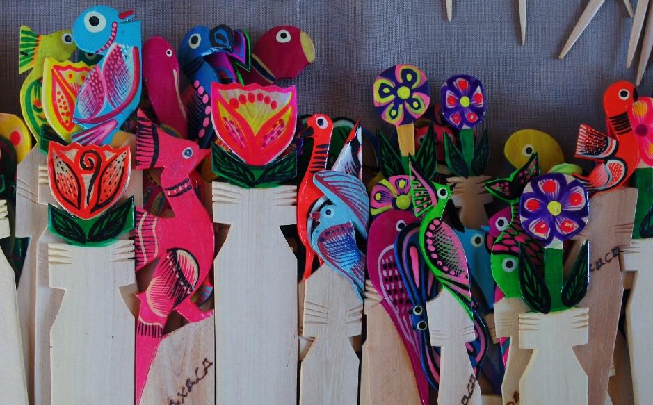 In Oaxaca City, tourists buy them as letter openers; artisans realized this and now make many more letter openers than alcahuetes. In fact, unpainted and pointless alcahuetes are now hard to find, so curiously, they are sold more as handicrafts than as kitchen utensils. La Fundación Alfredo Harp Helú Oaxaca notes that in the Central valleys of Oaxaca the (traditionally) plain wooden implements have become slimmer and now come with a colourfully painted animal on top and have become more like “bookmarks” for tourists than a functional kitchen/dining implement.