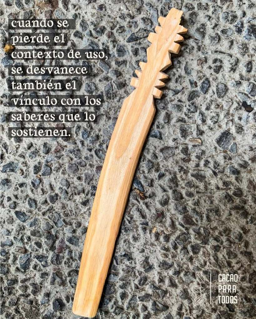 In markets and workshops, many artisans today call it a “separator” (“separador”) to sell it, because those unfamiliar with it don’t understand its use or its original name. This change of name is a sign of cultural detachment: when the context of use is lost, the connection to the knowledge that sustains it also fades. Preserving the use and knowledge of cacao is not a matter of nostalgia, but of cultural resistance.