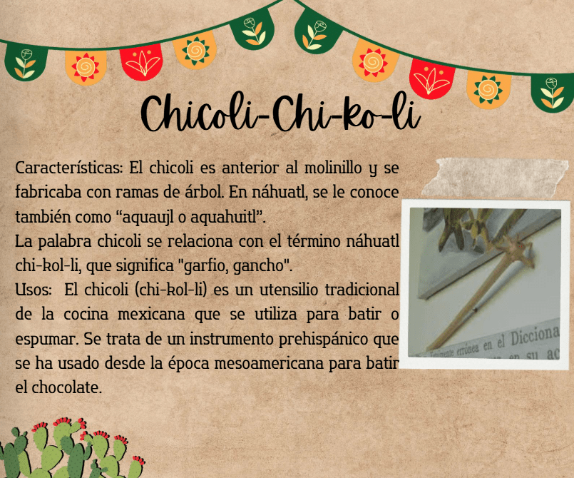 The chicoli as shown above is the perfect example of a mixing “stick” and also shows the beginning of the evolution of the molinillo as we know it today.
