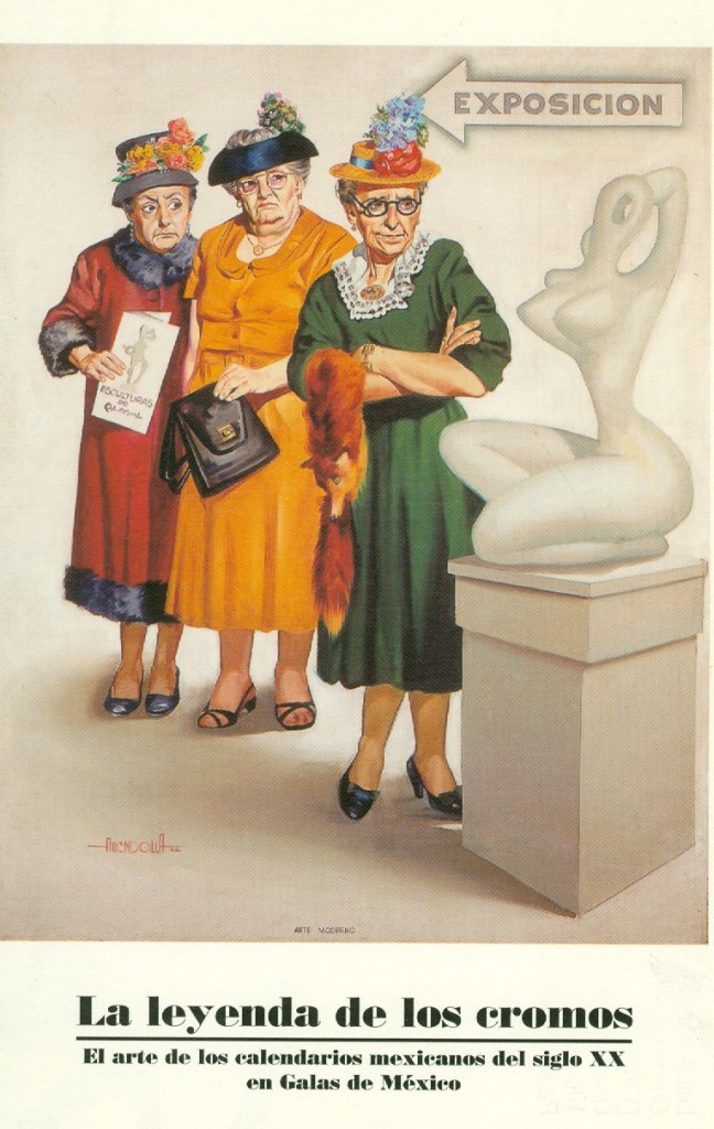 Postcard from the Exhibition: “The legend of the trading cards.” “The Art of Mexican calendars of the 20th century in Galas de México.” Luis Améndolla “Criticonas” (Modern Art) 1962, Oil on canvas 100 x 80.5 cm. For calendar line.