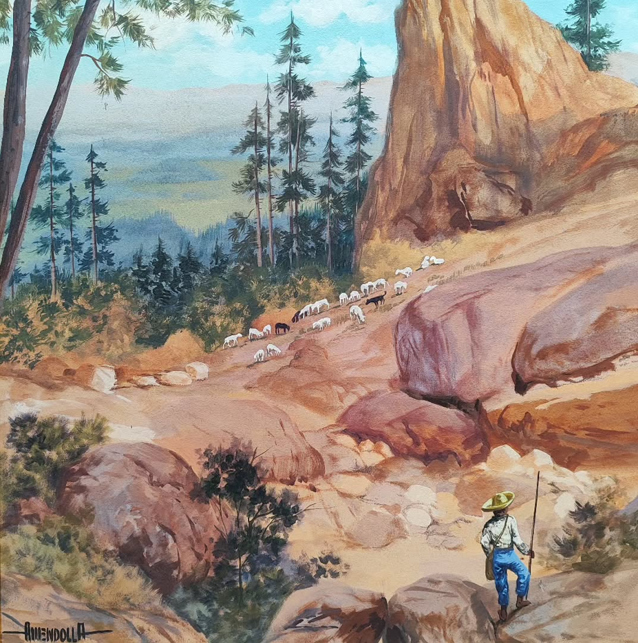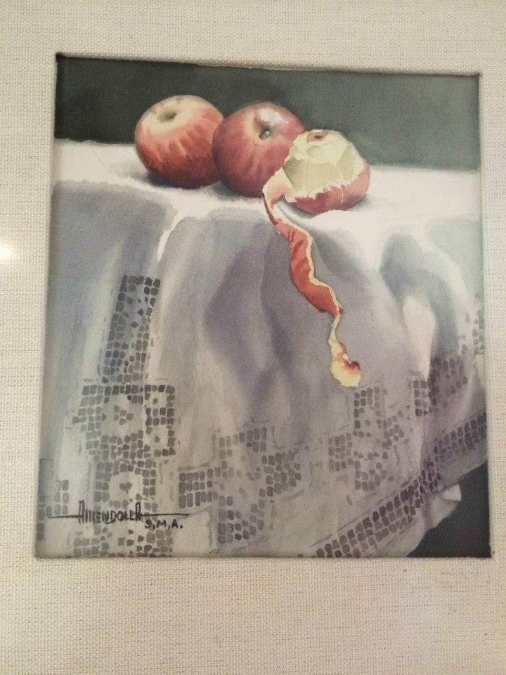 - the most detailed biography I could find was “Luis Ricardo Amendolla Gasparo, born on March 30, 1928 is considered one of the best watercolor painters of the Modern Era in Mexico. He achieved great status in the art world for his beautiful representations of landscapes and popular life where “El Tepozteco”, one of his most notable works, became the symbol of Tepoztlan. This place became so important to him that he lived there for many years. According to his wife Sara Celis, his personal staple was the people and places that represented Mexican culture, and it was his daughter Gloria who was to be his model. He was awarded for his work in Mexico and abroad. His artwork became known in New York, Houston, Los Angeles, Guatemala, Japan, Korea as well as Mexico. In his spare time he would draw cartoons satirizing himself. His friends described him as a “bohemian at heart” and great artist.”