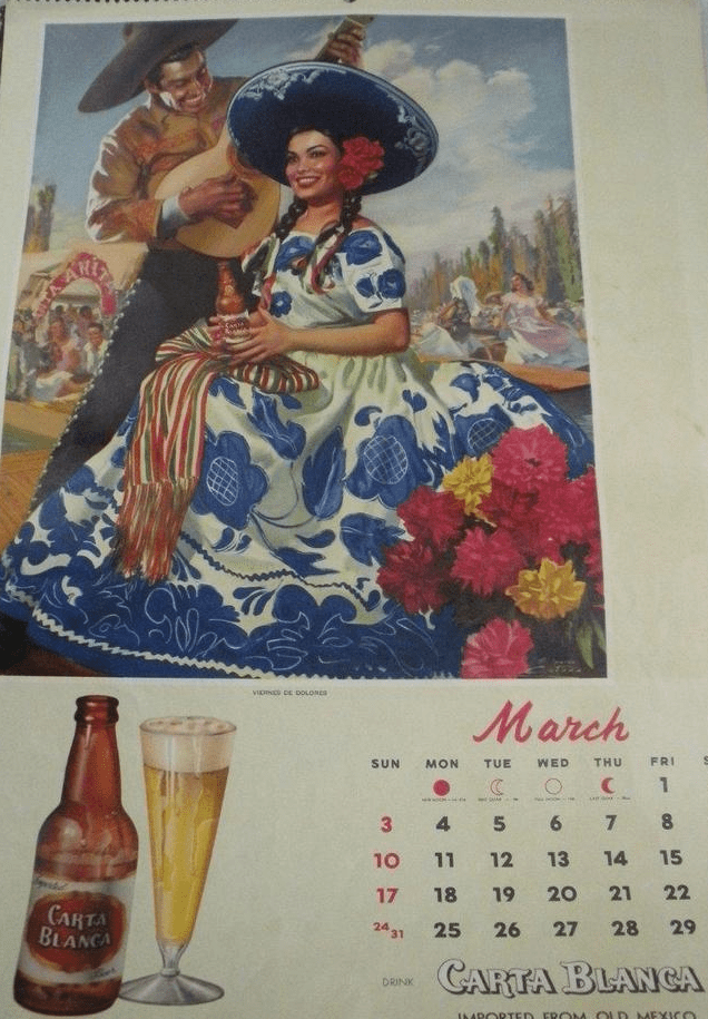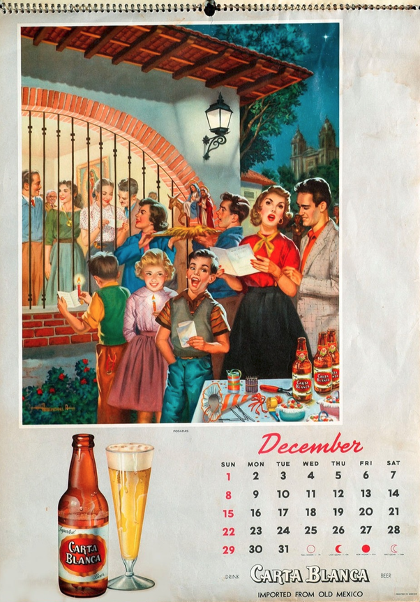 Luis illustrated the month of December for the 1957 Carta Blanca calendar (for the Estados Unidos)