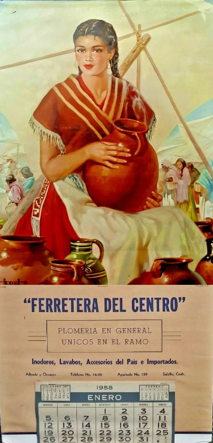 1958 colour calendar Ferretera (1) Del Centro Saltillo, Coahuila, Mexico