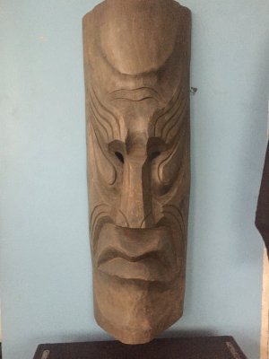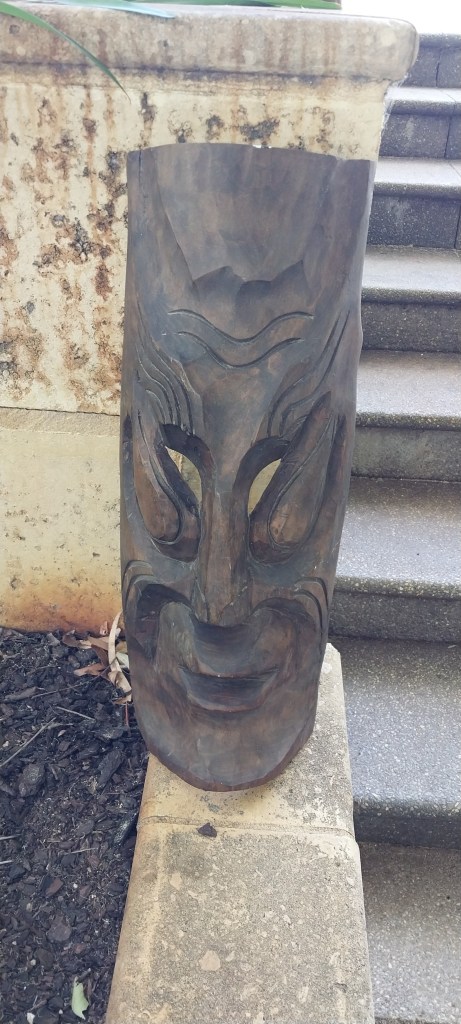 I first heard about his mask a couple of weeks ago when a friend noted he had seen a tiki mask (at a thrift store I don’t often visit) and that he was waiting until payday so he could go purchase it. 2 weeks later I visited the store and. noticed the mask on my way out. I was going to walk straight past it but curiosity got the better of me and I checked it out.