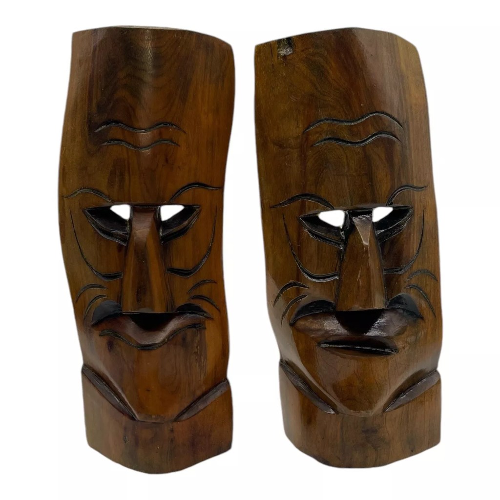 - 1972 Pair Of Vintage Hand Carved Wooden Tiki Mask 11.5” X 5” Made in Mexico City – https://www.ebay.com/itm/387505142528