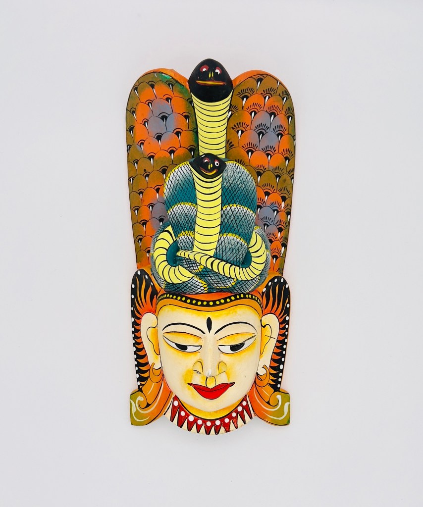 Naga Raksha, or Cobra Mask is a very prominent representation of Sri Lankan masks. This masks portrays a demon who could transform into a King Cobra