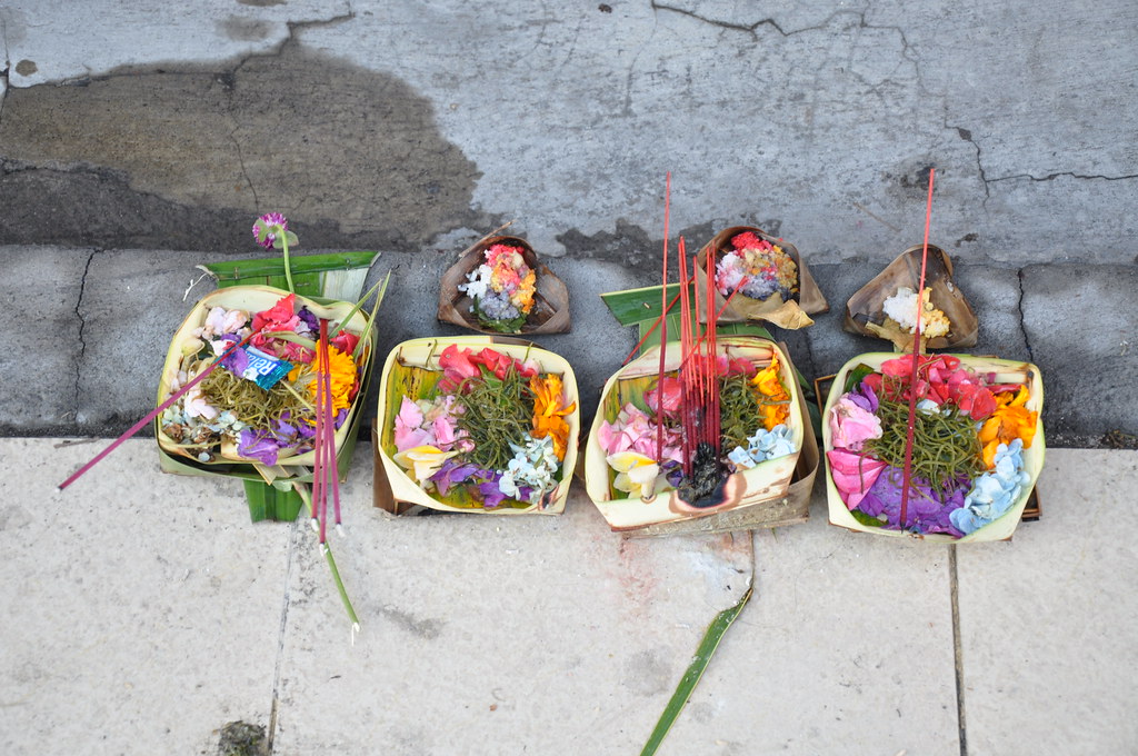 - Balinese flower offering ritual in the morning – By Okkisafire – Own work, CC BY-SA 4.0, https://commons.wikimedia.org/w/index.php?curid=50279712