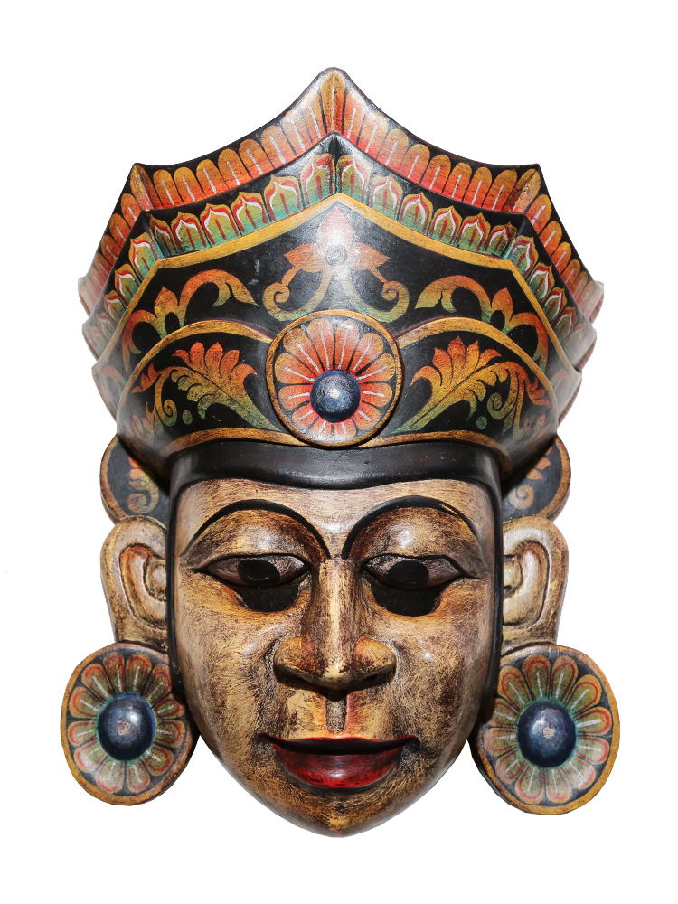 - Mayura – The Peacock mask is supposed to bring peace and harmony, therefore the bright beautiful colors white, and blue. A peacock is also know to bring peace and harmony. This mask also wards off evil spirits and ghosts.