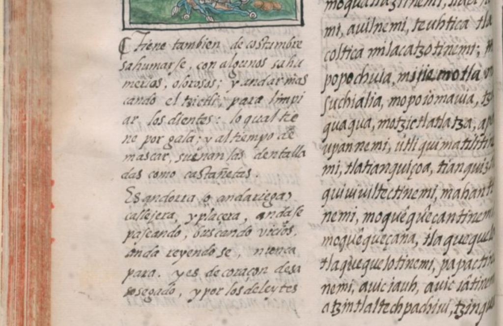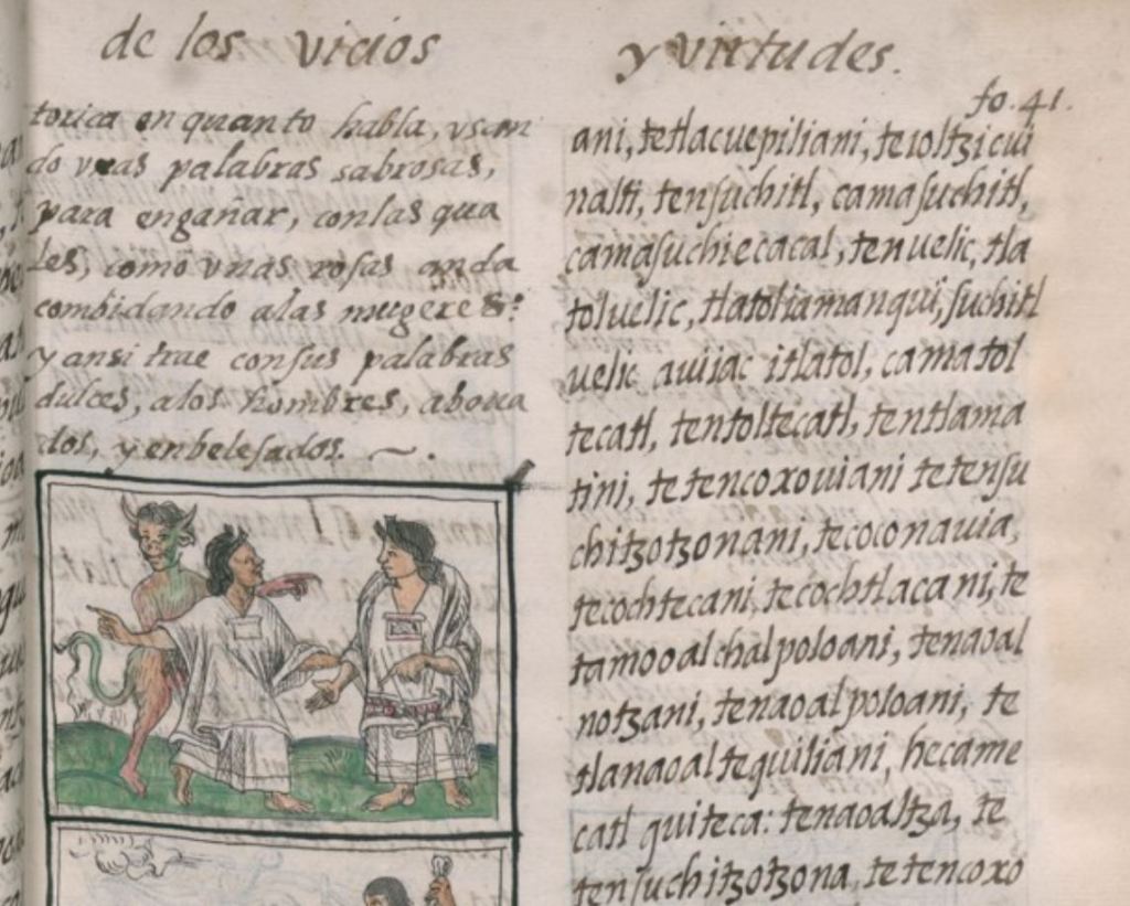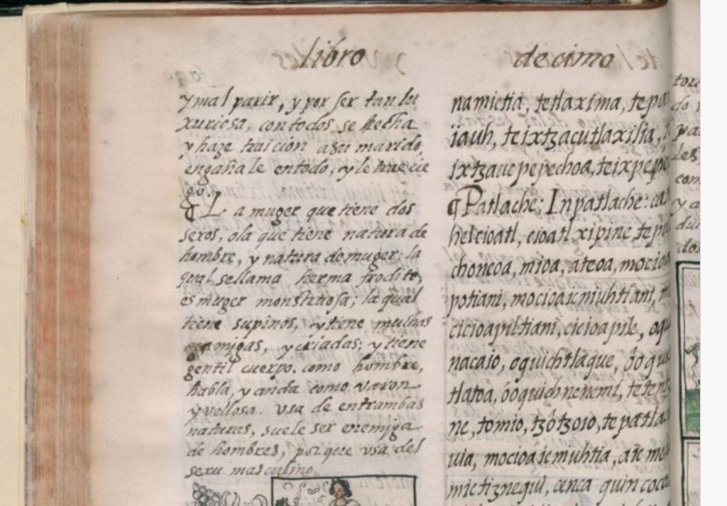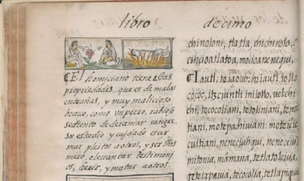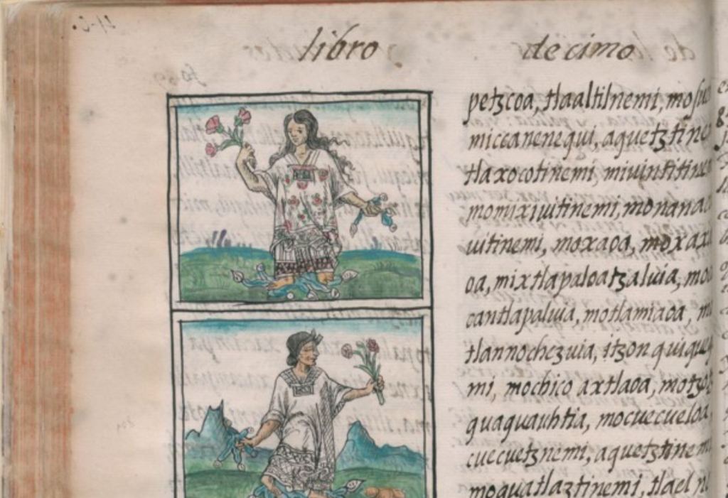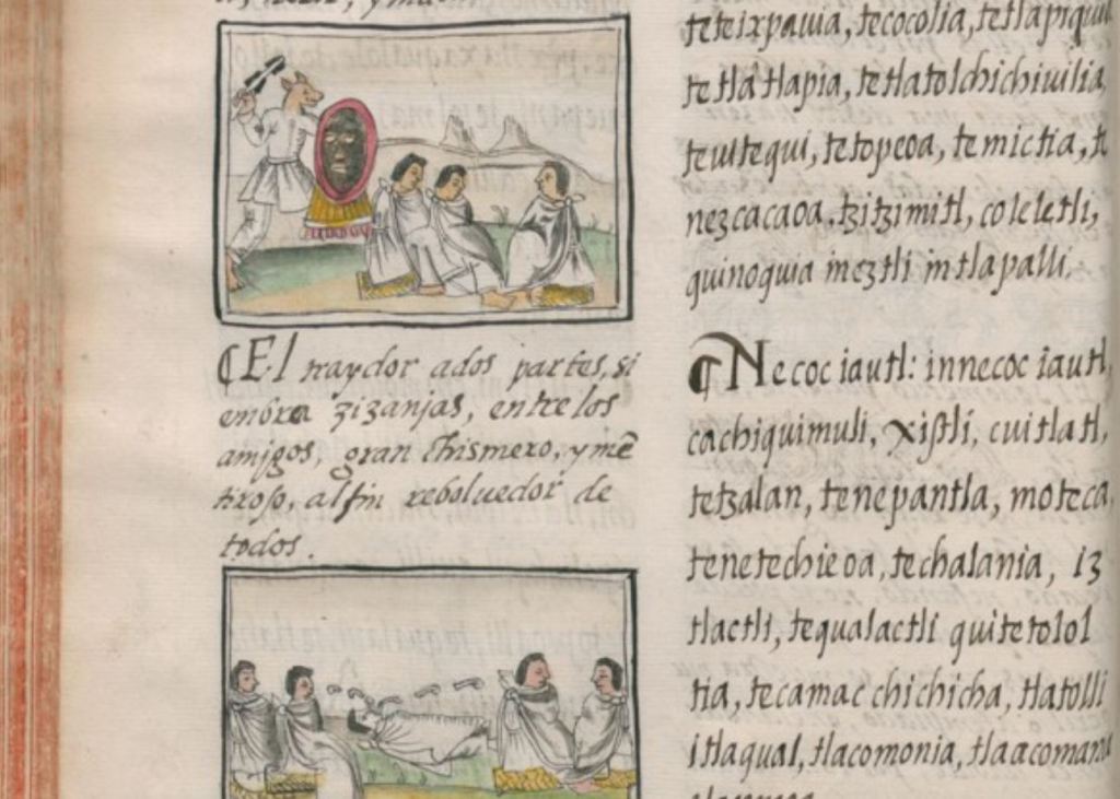 In partnership with Nahua elders and authors who were formerly his students at the Colegio de Santa Cruz de Tlatelolco, Sahagún conducted research, organized evidence, wrote and edited his findings. He worked on this project from 1545 up until his death in 1590. The work consists of 2,500 pages organized into twelve books; more than 2,000 illustrations drawn by native artists provide vivid images of this era. It documents the culture, religious cosmology (worldview) and ritual practices, society, economics, and natural history of the Aztec people. It has been described as “one of the most remarkable accounts of a non-Western culture ever composed.”
