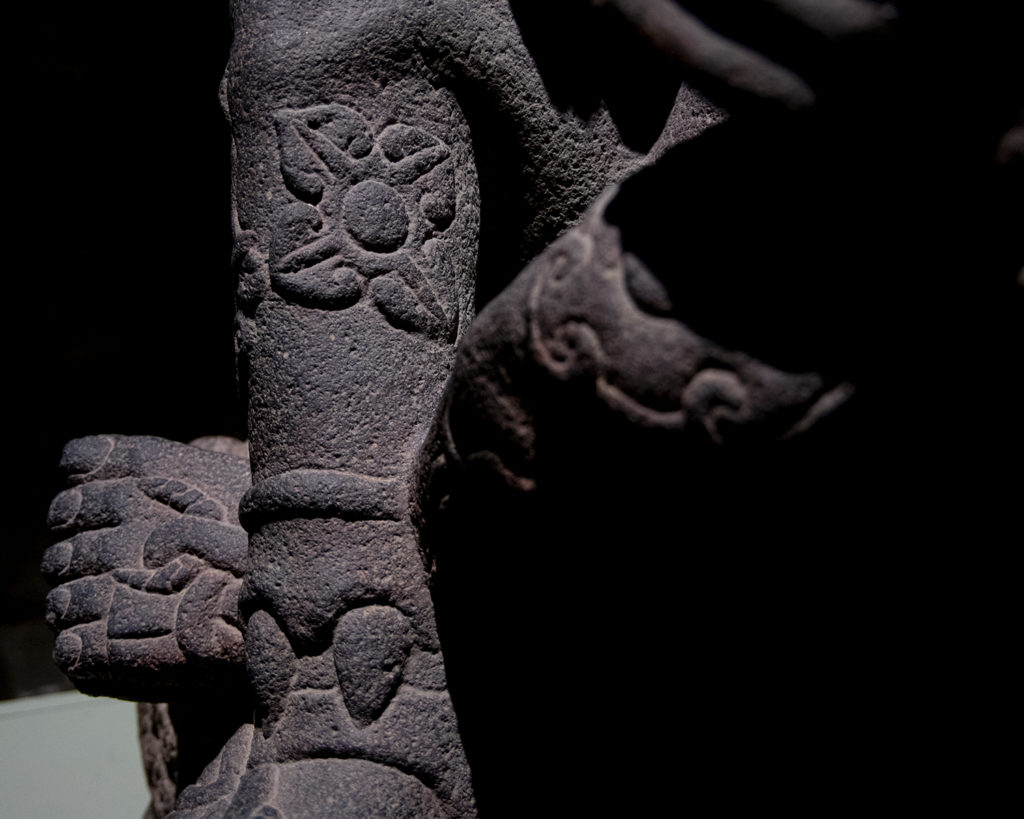 The sculpture is made of marbled marble, a metamorphic rock with veins of serpentine and has traces of manufacturing typical of the Mexica tradition; it is estimated to have been made between 1469 and 1481.