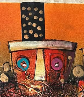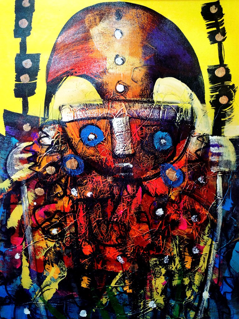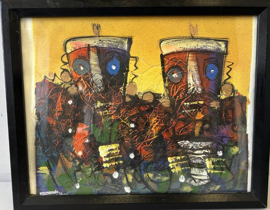 Joyous Yuletide. Well it’s not Christmas but today certainly feels like it. I was scanning Facebook Market place (as I do) to find anything remotely Mesoamerican and mask related when I stumbled across the painting below. I was also quite surprised that it was listed as being FREE. This I could not believe so I contacted the seller and after a little back and forth I indeed scored this item for free.