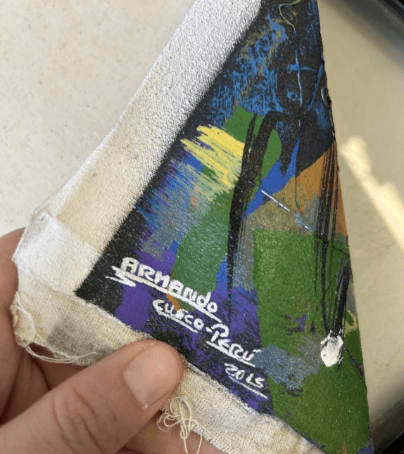 The seller posted the painting as being “Inca painting on canvas purchased while on holiday in Cusco Peru“. She could offer me no further information other than that she purchased it in 2014.