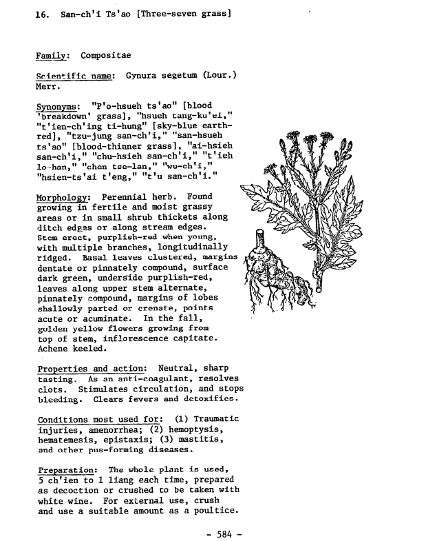 - Gynura japonica Plate from book (image) – By Philipp Franz von Siebold and Joseph Gerhard Zuccarini – Flora Japonica, Sectio Prima (Tafelband)., Public Domain, https://commons.wikimedia.org/w/index.php?curid=795353