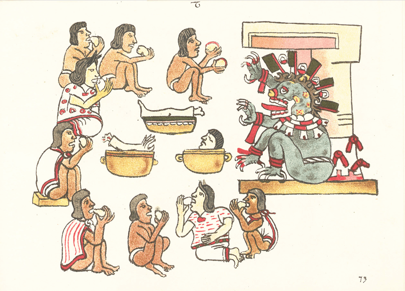 “The meal was shared among the whole community as an act of religious communion. After the conquest, when cannibalism was banned, pork became the staple meat as it “tasted very similar” (according to a Spanish priest)
