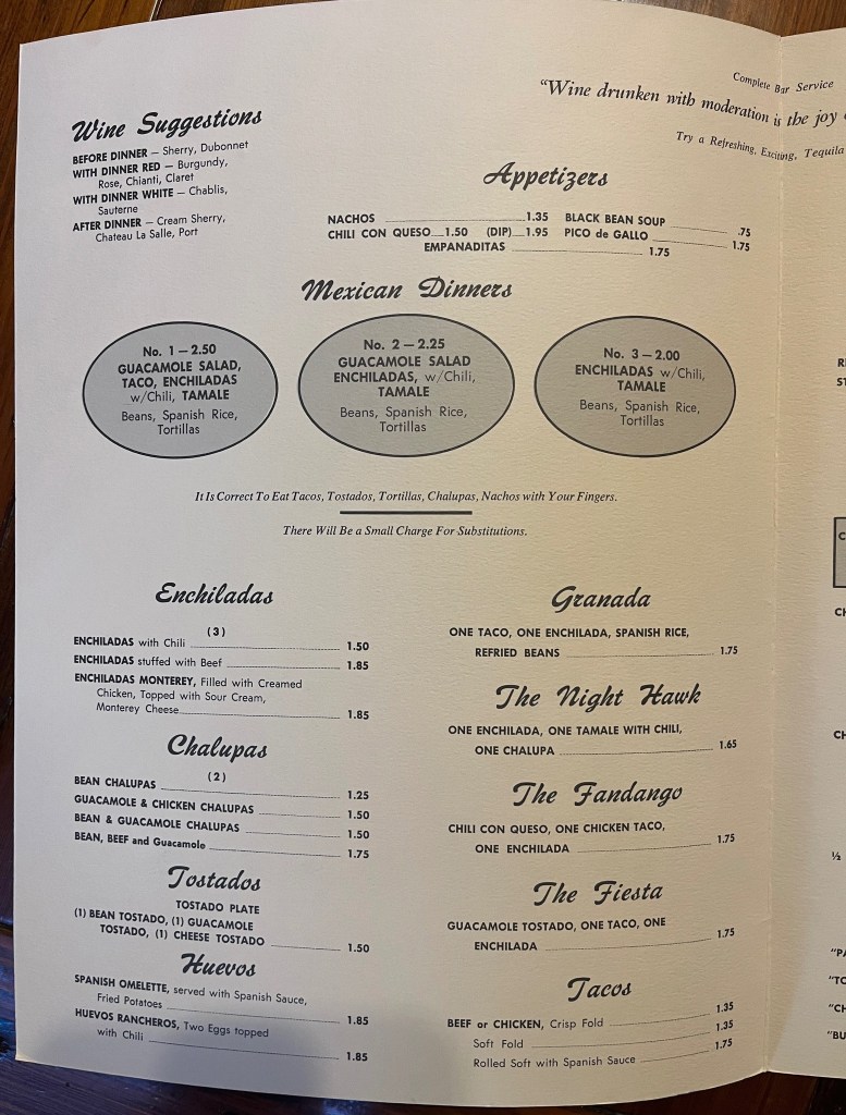 La Fondas menu is quite Texmexican (the Tequila selection is a little poor though)