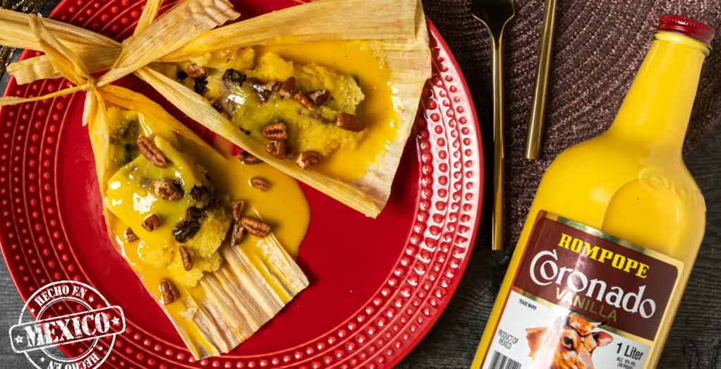 Tamales de Rompope, a dessert dish made with a corn masa dough flavoured with the traditional Mexican eggnog-like liqueur.